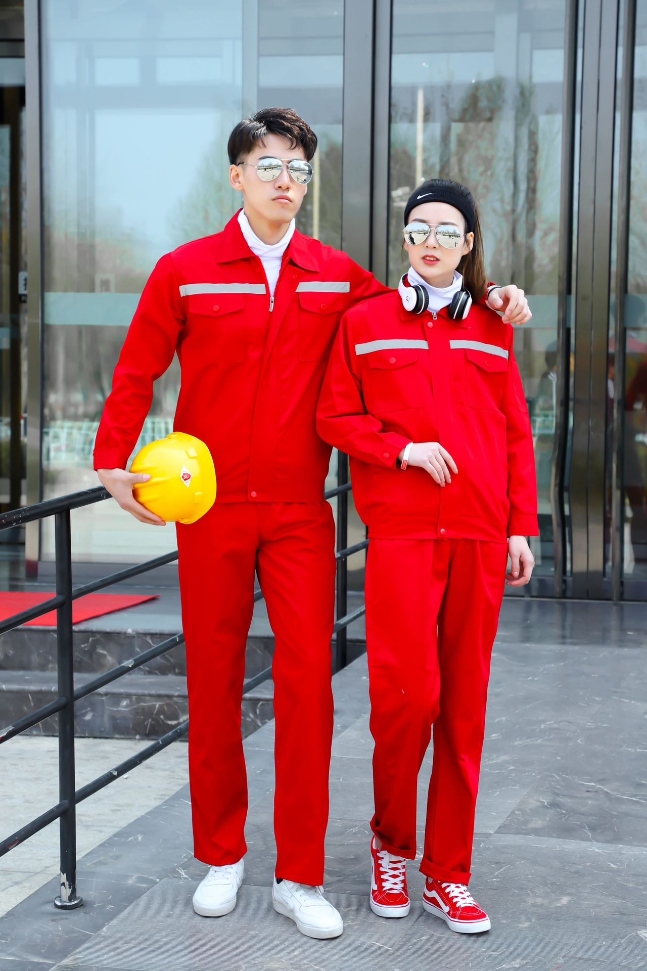 ชุดฟอร์มพนักงานช่างวิศวกรรม ช่างไฟฟ้า ช่างประปา ช่างยนตร์ ช่างกลโรงงาน ช่างก่อสร้างแถบสะท้อนแสงแขนสั้น